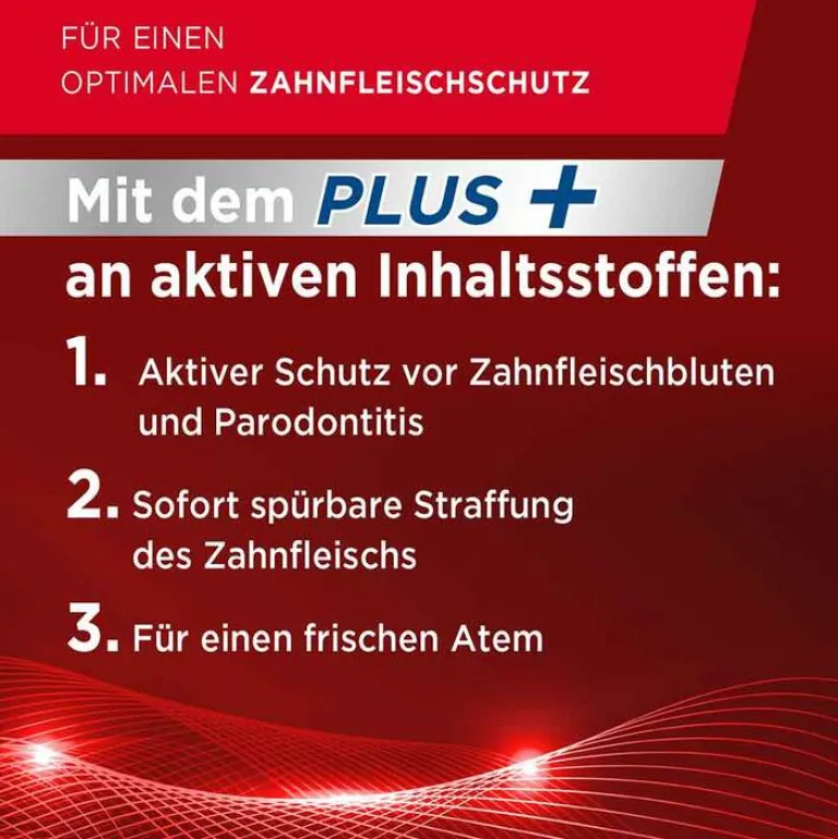 Das Ergebnis: Studienergebnisse zeigen, dass 95% der Verbraucher dieses Produkt erneut kaufen würden.* Dank dem 12 Stunden Langzeitschutz wird die Biofilmbildung auf den Zähnen gehemmt. Anwender:innen profitieren von einem sofortigen, ab der ersten Anwendung spürbaren**, straffen Zahnfleischgefühl und frischem Atem – denn nur gesundes Zahnfleisch hält den Zahn fest.