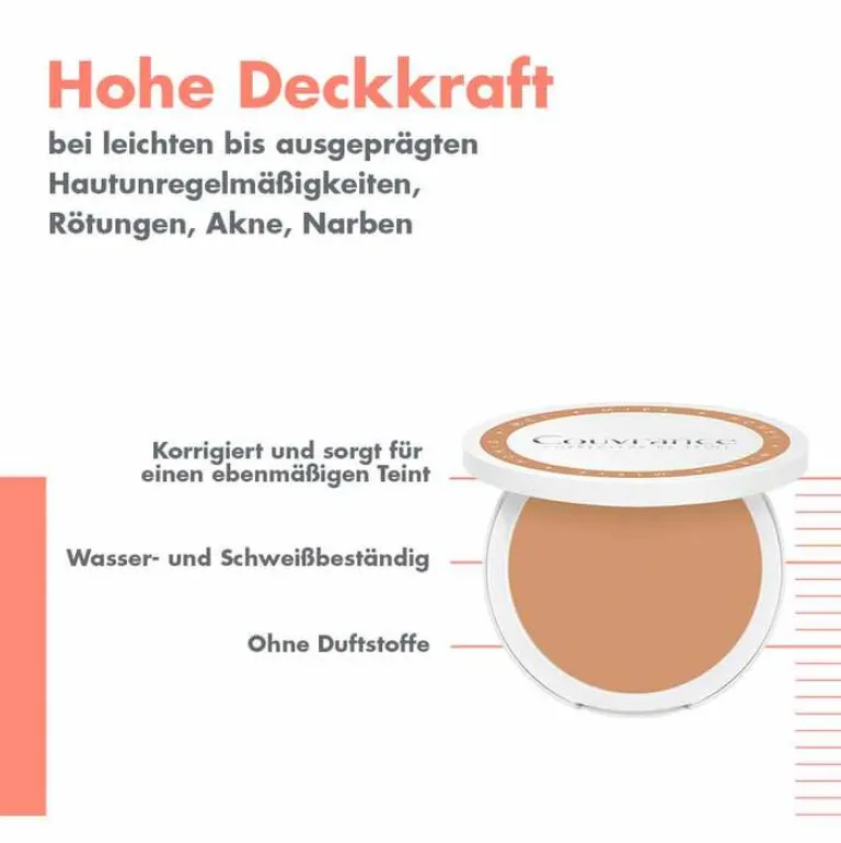Das Couvrance Kompakt Creme-Make-Up von Eau Thermale Avene ist ein hochverträgliches dermatologisches Make-up mit SPF30. Mit seiner hohen Deckkraft sorgt es für einen ebenmäßigen Teint und versorgt die Haut den ganzen Tag lang mit Feuchtigkeit (12h-Halt*).