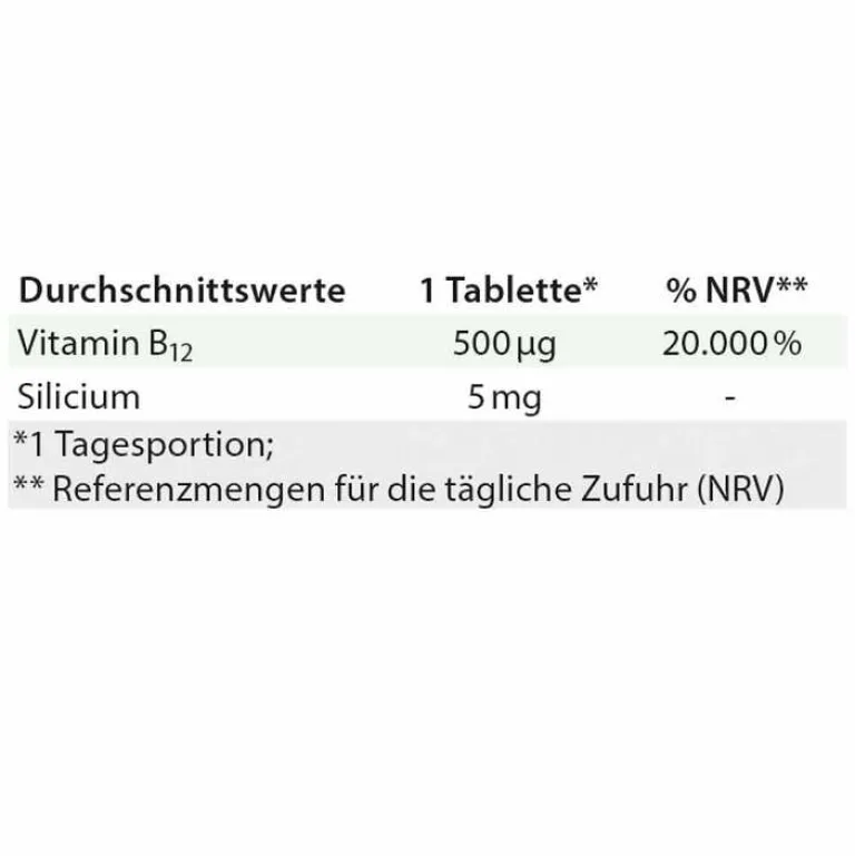 - pro Lutschtablette 500 μg Vitamin B12 – hochdosiert, vegan