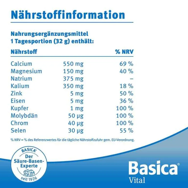 Inhaltsstoffe pro 32 g Basica Vital (Tagesportion)