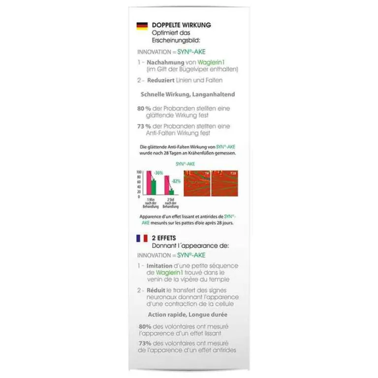 Tragen Sie zwei Mal täglich Biotox auf Ihre Mimikfalten (Stirn, Krähenfüße, Nasolabialfalte, Lippenfätchen) unter Ihre Pflegecreme auf.