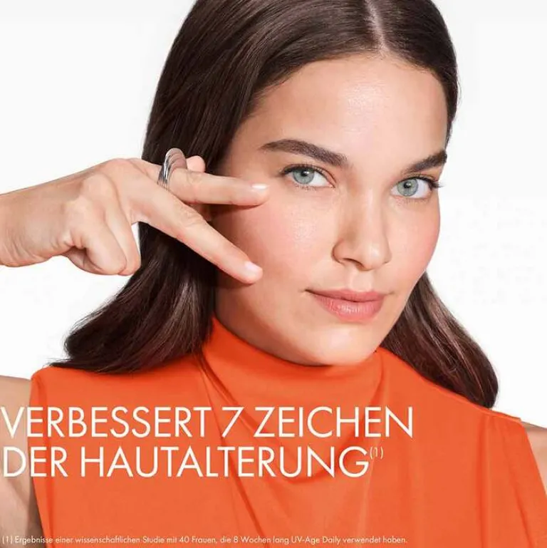 Die Capital Soleil UV-Age Daily LSF 50+ Sonnencreme von Vichy ist ein ultraleichtes Anti-Aging Fluid. Es schützt die Haut zuverlässig vor UVA- und UVB-Strahlen und wirkt sichtbar den Anzeichen der Hautalterung, wie Falten und dunklen Flecken, entgegen.