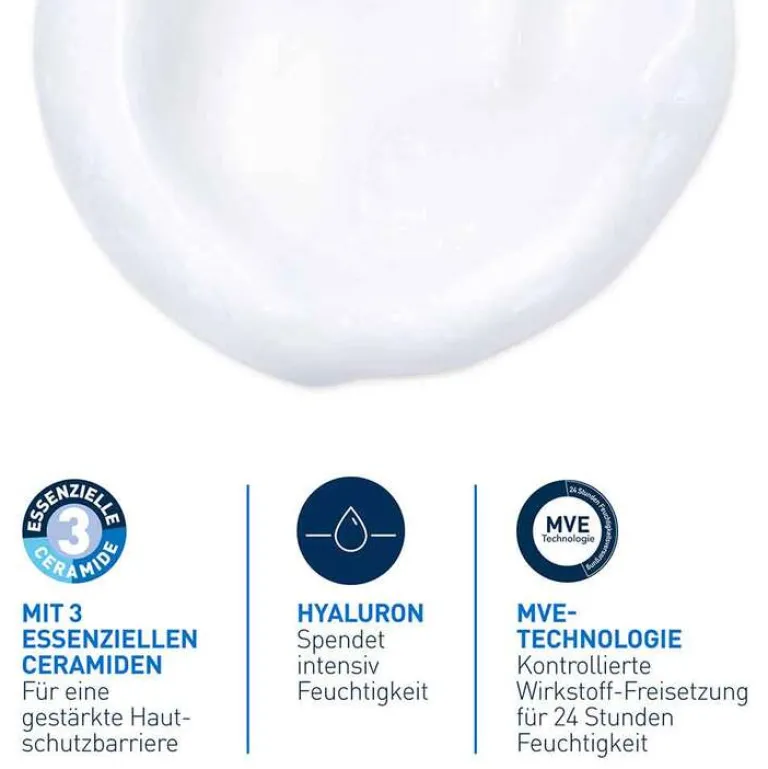Dank der MVE-Technologie werden die Aktiv-Wirkstoffe schrittweise freigesetzt und wirken so besonders lange. Die sanfte CeraVe Reinigungscreme schäumt nicht, ist nicht-komedogen und verzichtet auf Dufstoffe – auch ideal für Kinderhaut und Allergiker geeignet.