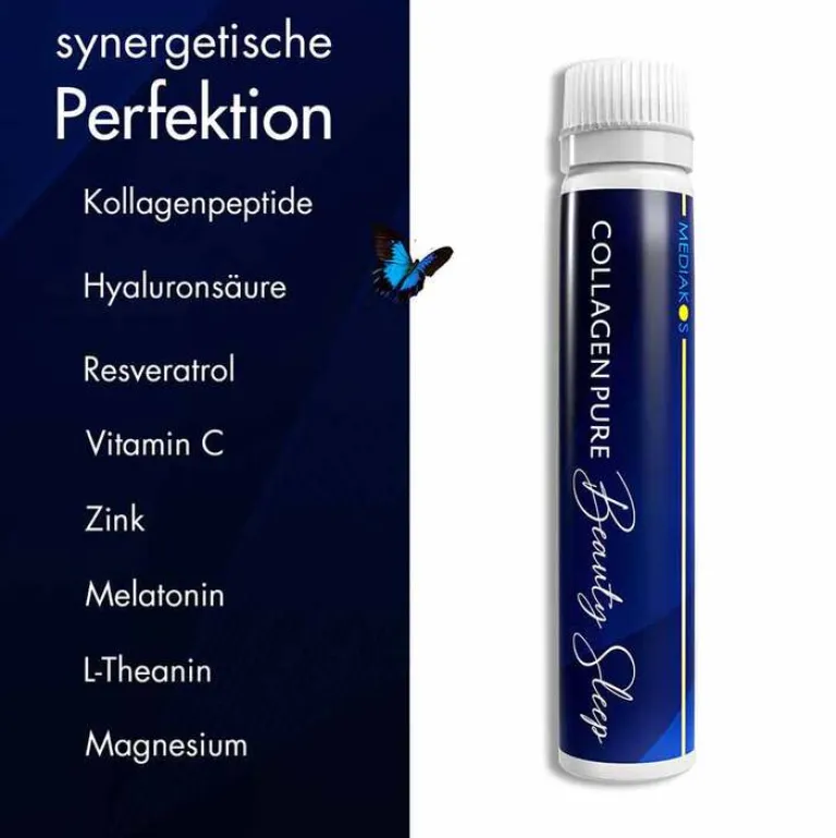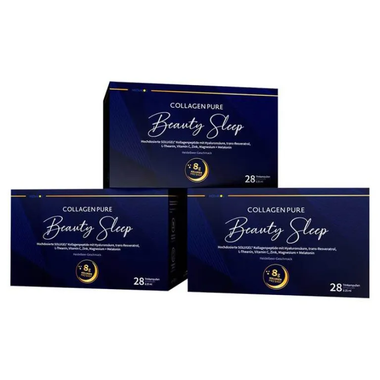 - Nahrungsergänzungsmittel mit Kollagen, Melatonin, Hyaluronsäure, L-Theanin, Vitamin C und Mineralstoffen