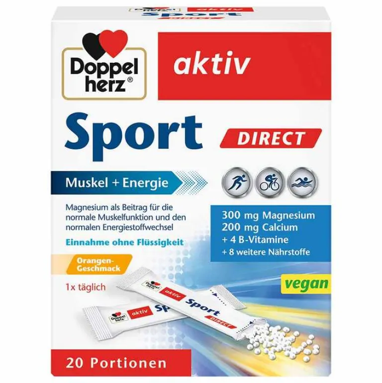 Durch ein modernes Herstellungsverfahren ist es gelungen, eine moderne und praktische Darreichungsform zu entwickeln: Doppelherz Sport Direct enthält seine wertvollen Nährstoffe in Form von Micro-Pellets: Den Portionsbeutel aufreißen, den Inhalt direkt auf die Zunge geben und die feinen Granulatperlen lösen sich in Sekundenschnelle auf.