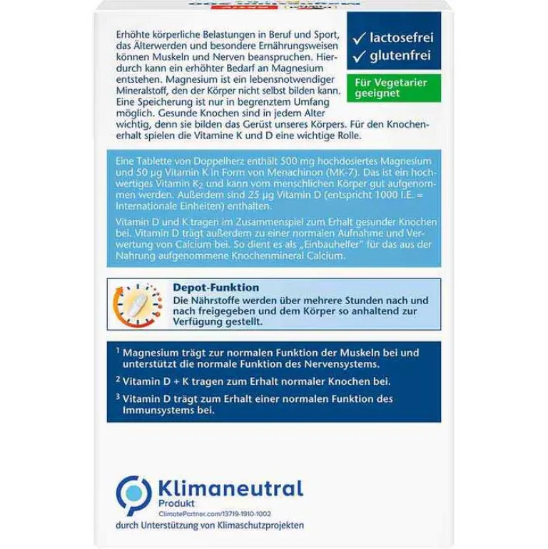 Doppelherz Magnesium 500 + D3 + K2 Depot Tabletten, 60 St- Magnesium