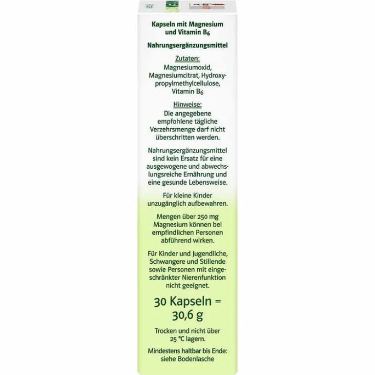 Magnesiumoxid, Magnesiumcitrat, Hydroxypropylmethylcellulose, Vitamin B6