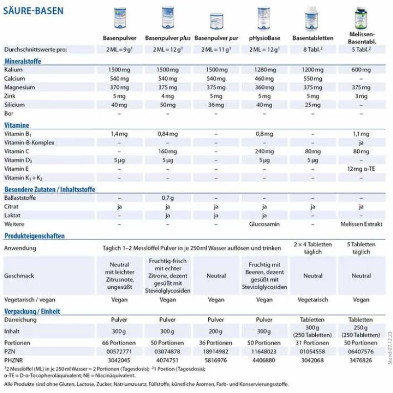 Basen- und Mineralstoffbalance1 mit Kalium, Magnesium, Calcium und Zink