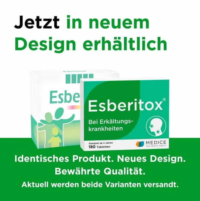 Esberitox®. Anwendungsgebiet: zur unterstützenden Therapie viraler Erkältungskrankheiten. Zu Risiken und Nebenwirkungen lesen Sie die Packungsbeilage und fragen Sie Ihre Ärztin, Ihren Arzt oder in Ihrer Apotheke. Apothekenpflichtig. Stand: 01/2024. Schaper & Brümmer GmbH & Co. KG, Bahnhofstr. 35, 38259 Salzgitter
