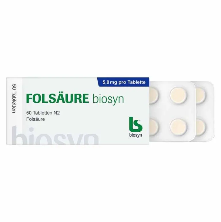 FOLSÄURE biosyn Tabletten.Anwendungsgebiet: Therapie von Folsäuremangelzuständen, die diätetisch nicht behoben werden können. Packungsbeilage beachten. Enthält Lactose. Zu Risiken und Nebenwirkungen lesen Sie die Packungsbeilage und fragen Sie Ihre Ärztin, Ihren Arzt oder in Ihrer Apotheke.