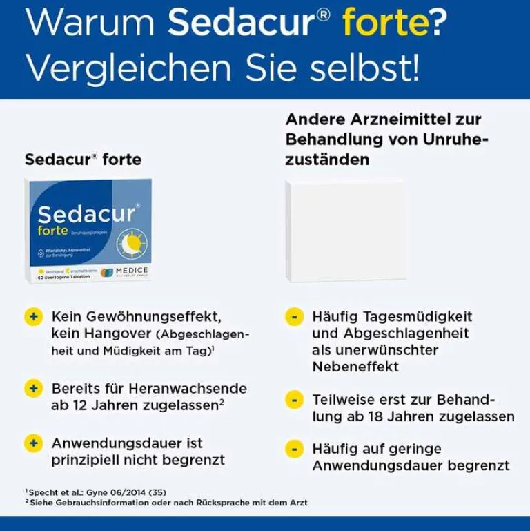 Mit Sedacur® forte Beruhigungsdragees ist es gelungen, ein modernes, wirksames und gut verträgliches Arzneimittel zur Behandlung von Unruhezuständen und nervös bedingten Einschlafstörungen zu entwickeln.