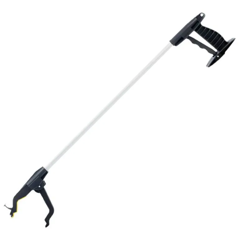 Unverzichtbarer Allroundhelfer, simpel in der Bedienung. Der Handgriff ist behinderungsgerecht gestaltet und der Hebel leicht mit den Fingern zu betätigen. Die Greifhilfe RFM® Deluxe ist für den allgemeinen Einsatz bestimmt und geeignet für Personen, die in Ihrer Beweglichkeit eingeschränkt sind. In der Spitze befindet sich ein Magnet, mit dem kleine metallische Gegenstände, wie z.B. Münzen, Nadeln oder Büroklammern aufgesammelt werden können. Ein Haken am vorderen Ende ermöglicht das Aufheben leichter Gegenstände, wie etwa einem Schlüsselbund. Der Kopf der Greifhilfe RFM® Deluxe ist drehbar, um die Anwendung zu erleichtern und um schmerzhafte Bewegungen beim Drehen des Handgelenks zu vermeiden.
