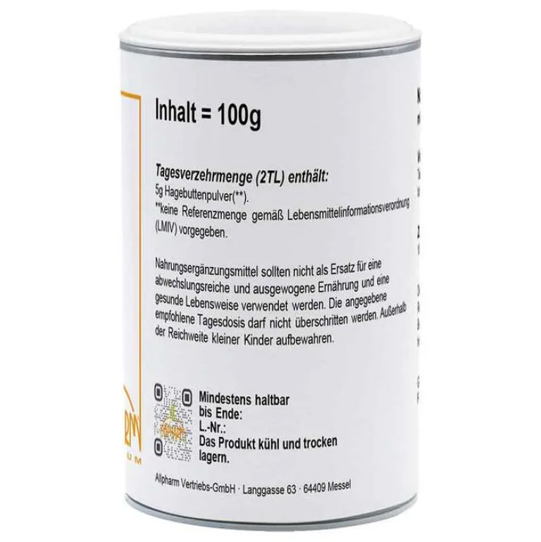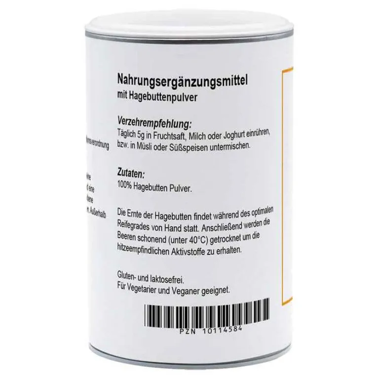 100 % Hagebuttenpulver* (*aus kontrollierten biologischem Anbau).