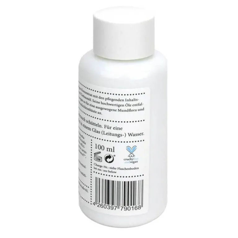 Die Flasche bitte vor Gebrauch gut schütteln. Für eine Anwendung mit Hilfe eines Löffels 3 Tropfen Mundwasser Essenz in ein Glas (Leitungs-)Wasser geben. Danach 30 Sekunden im Mund spülen. Nicht schlucken!