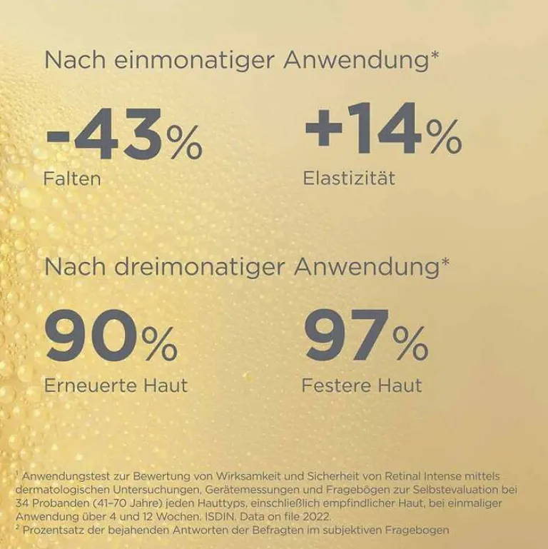 Lassen Sie Ihre Haut sichtbar jünger aussehen – mit Retinal Intense, einem zweiphasigen Nachtserum, das zur beschleunigten Hauterneuerung beiträgt. Nach einer Anwendung von nur einem Monat werden bereits Falten und Ausdruckslinien um 43% reduziert, was für eine glattere, ebenmäßigere Haut und jüngeres Aussehen sorgt.