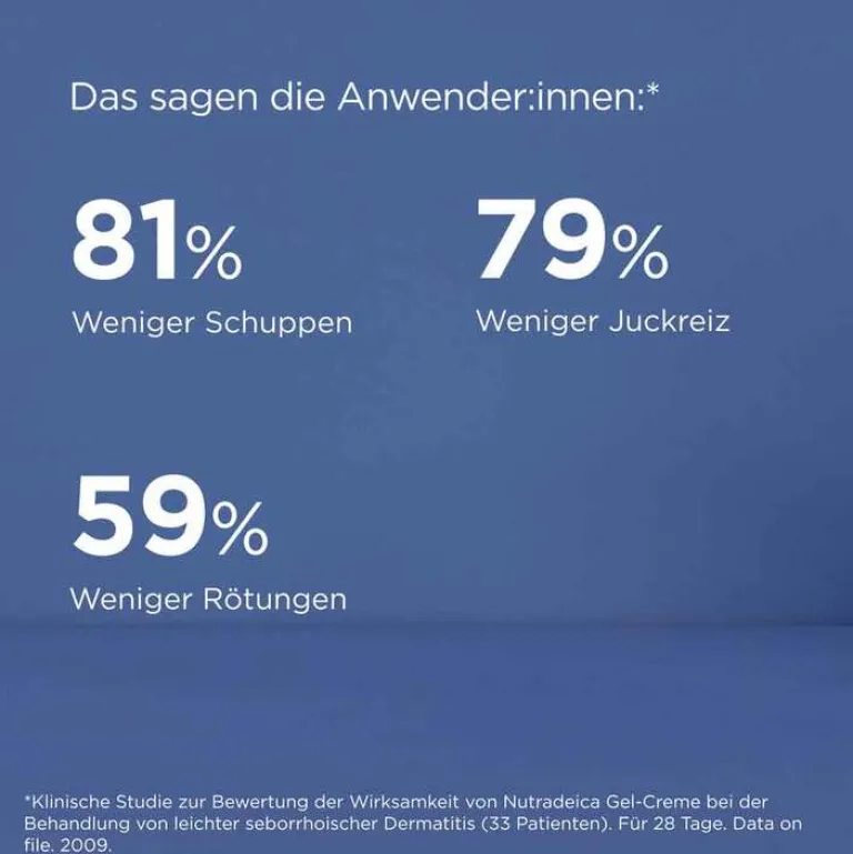 Leiden Sie unter juckender, geröteter und schuppiger Gesichtshaut, die besonders in der T-Zone (um die Nase, Augenbrauen, Stirn und Haaransatz) betroffen ist? Nutradeica Gel-Creme ist speziell entwickelt, um die Symptome der Seborrhoe zu lindern und Ihre Haut zu beruhigen.
