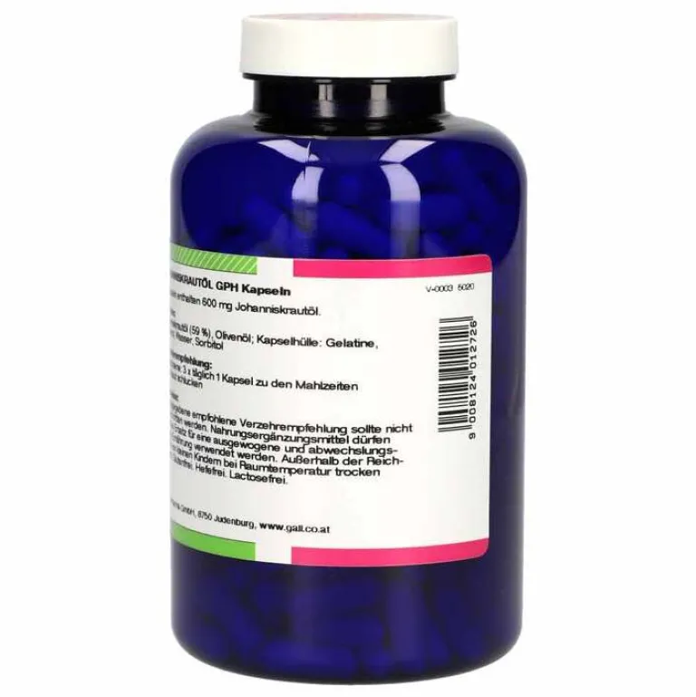 - 3 Kapseln enthalten 600 mg Johanniskrautöl
