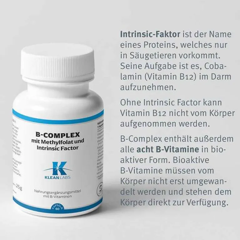 Klean Labs Vitamin B Komplex-B-Complex mit Methylfolat und Intrinsic Factor Kap, 60 St