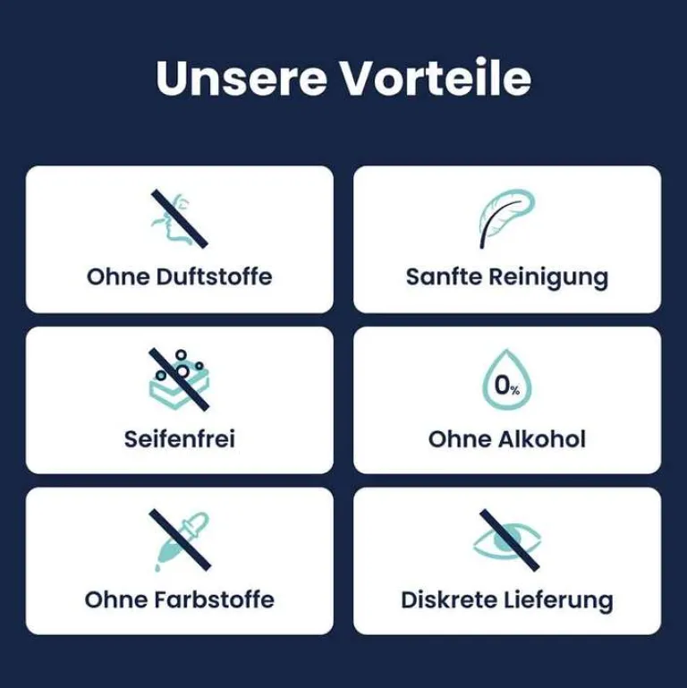 - Ohne Duftstoffe, seifenfrei, ohne Alkohol, ohne Farbstoffe