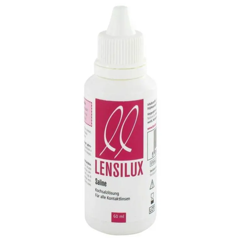 Lensilux Saline ist eine Abspüllösung für alle Kontaktlinsen. Bei der wöchentlichen enzymatischen Reinigung kann die Tablette in Lensilux Saline aufgelöst werden.