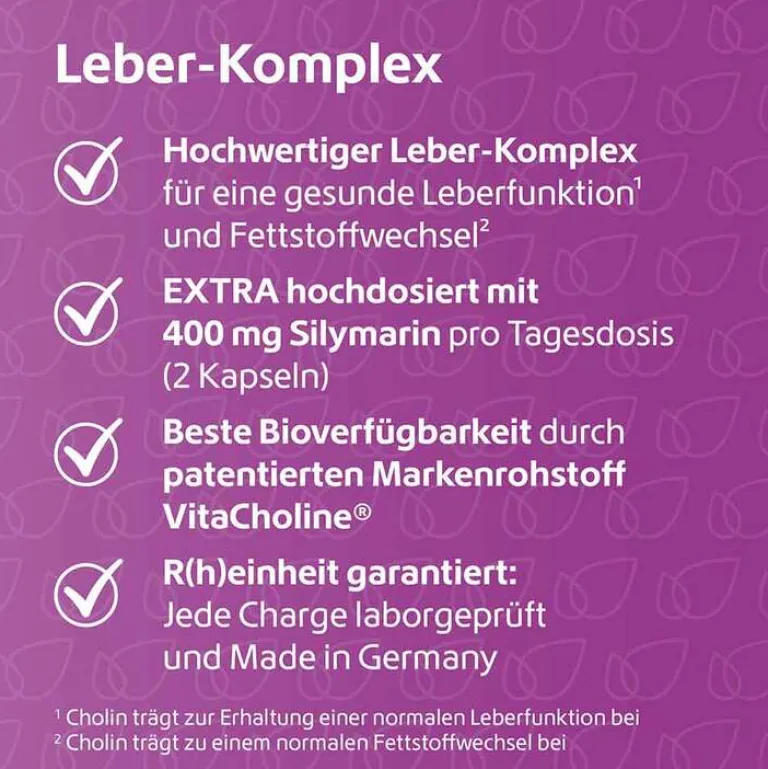R(h)ein Nutrition Leber-Komplex kombiniert geschätzte Pflanzenextrakte mit VitaCholine®, dem innovativen Markenrohstoff für Cholin.