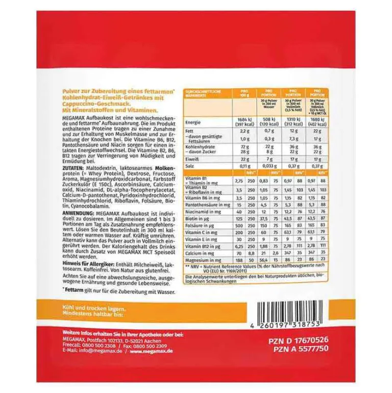 Megamax Aufbaukost Cappuccino Pulver, 30 g^ Outlet