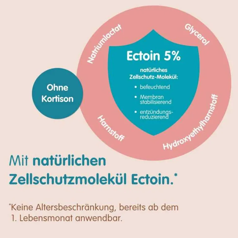 Zur Vorbeugung und symptomatischen Behandlung von Neurodermitis Für eine frühzeitige Behandlung eines Neurodermitis-Schubes – mit natürlichem Ectoin gegen juckende Haut und frei von Kortison.