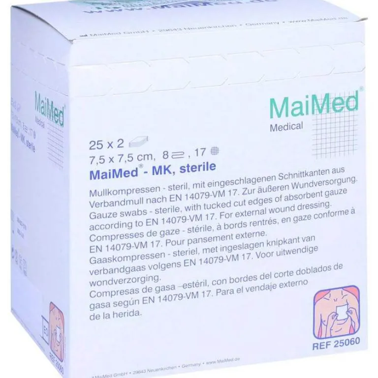 Mullkompressen 7,5×7,5 cm steril 8fach, 25X2 St- Sterile Kompressen