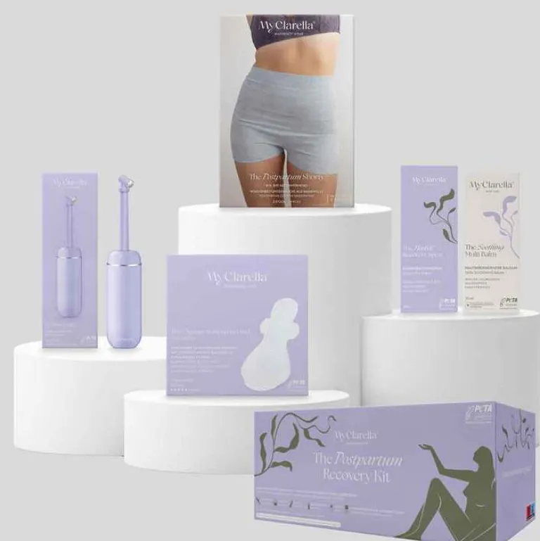 Das MyClarella Postpartum Recovery Kit ist ein speziell zusammengestelltes Wochenbett-Set, das Müttern nach der Geburt umfassenden Komfort und Unterstützung bietet – unabhängig von der Geburtsart.