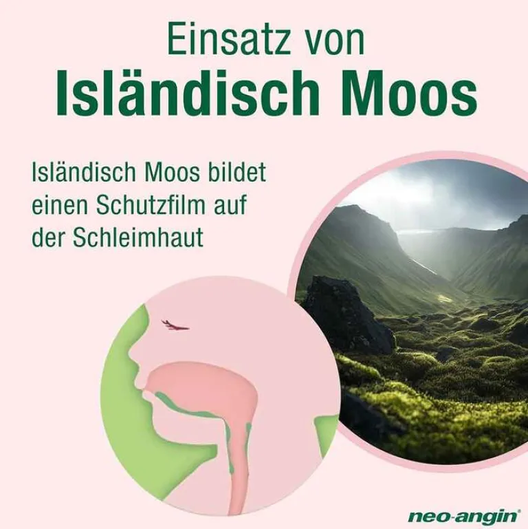 Die neo-angin® junior Halstabletten lindern Halsschmerzen und der Inhaltsstoff Isländisch Moos bildet einen Film, der sich auf die gereizte Schleimhaut in Mund und Rachen legt. Diese wird so beruhigt und gleichzeitig weitere Reizungen abgewehrt. Die Schleimhaut kann sich schneller erholen und ihre ursprüngliche Funktion wieder erfüllen.