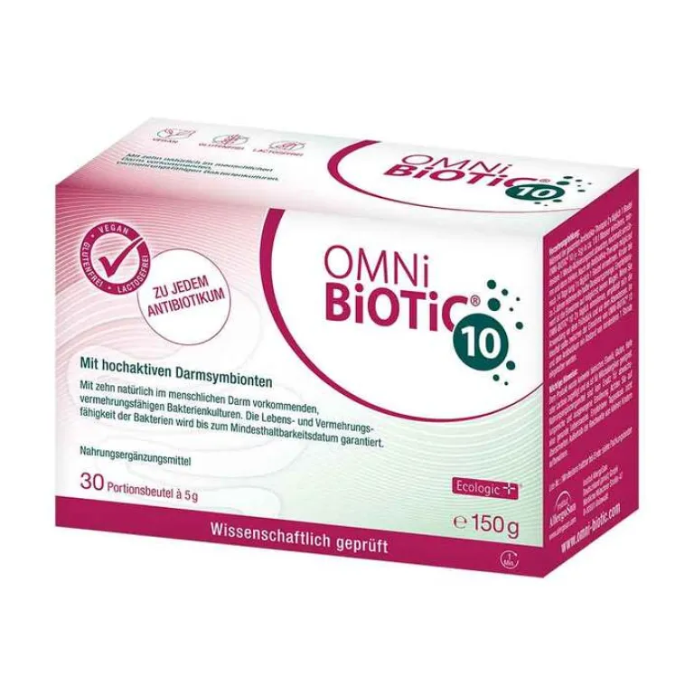 Omni-Biotic 10 enthält pro Portion 5 Milliarden Darmbakterien aus 10 verschiedenen Stämmen, die natürlich im menschlichen Darm vorkommen. In wissenschaftlichen Studien wurde gezeigt, dass sich die in Omni-Biotic 10 enthaltenen Bakterien im Darm ansiedeln und vermehren können.