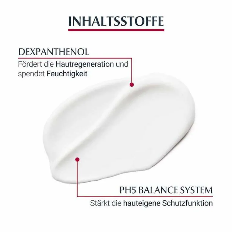Speziell empfindliche Haut benötigt eine Pflege, die die natürliche Schutzfunktion widerherstellt, denn Umweltreize können leicht Spannungsgefühl, Hautrötungen und -irritationen auslösen. Das Eucerin pH Balance System mit ph5 Citratpuffer stellt den optimalen pH-Wert der Haut wieder her, während 5% Dexpathenol die Regeneration der Haut stimulieren und helfen, sie widerstandsfähiger zu machen.