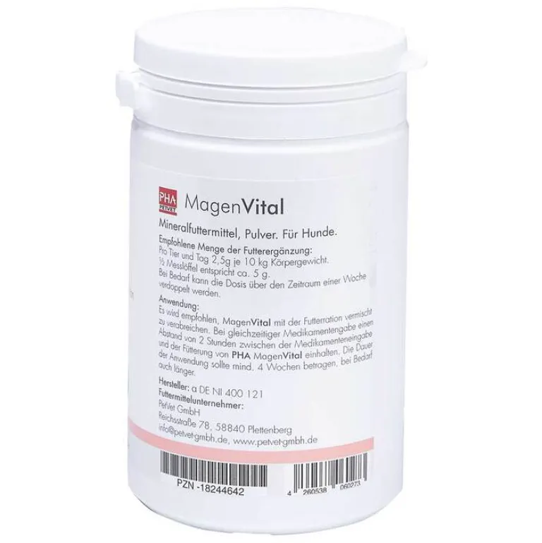Darreichungsform:PulverPackungsgröße:200 gPZN:18244642Anbieter/Hersteller:PetVet GmbHMarke/Präparat:PhA