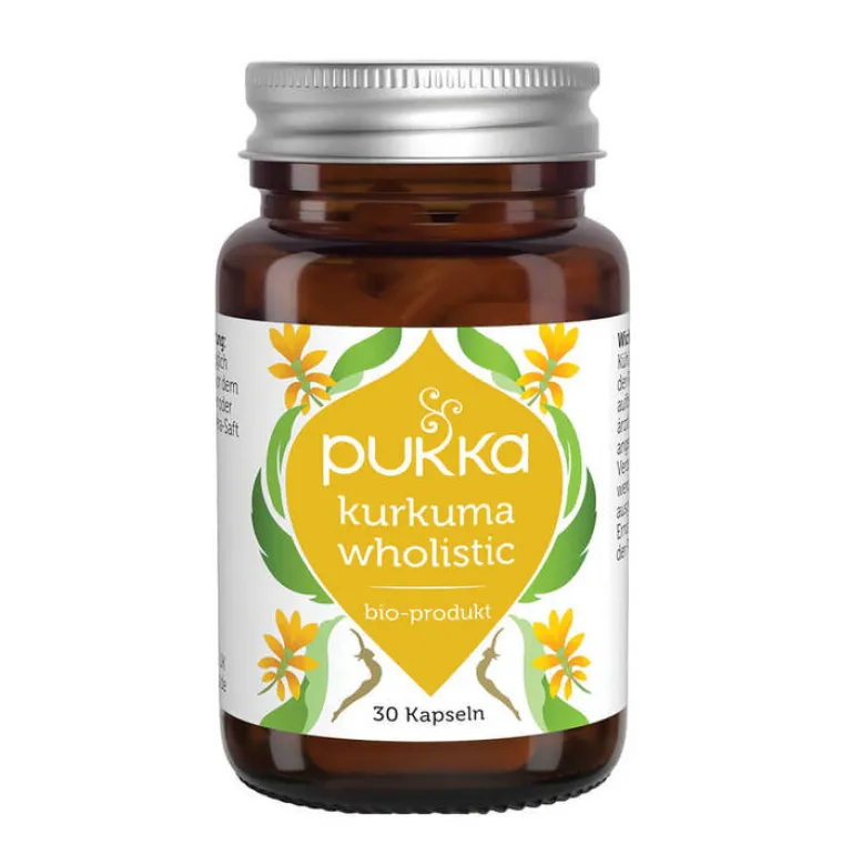 Kurkuma ist eine von zehn Pflanzen, deren Extrakt Pukka in superkonzentrierter Form herstellt. Diese Wholistic-Extrakte verbinden das volle Pflanzenspektrum mit den konzentrierten fett- und wasserlöslichen Verbindungen.