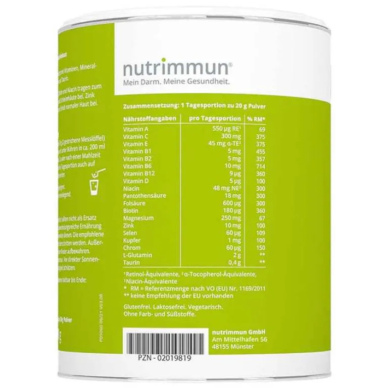 - Nahrungsergänzungsmittel mit Vitaminen, Mineralstoffen, Glutamin und Taurin