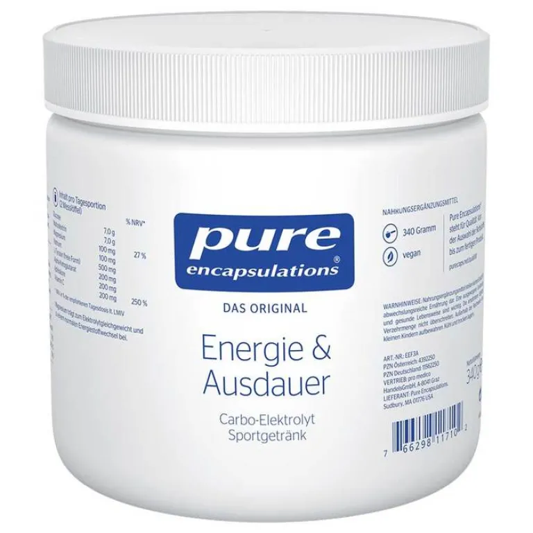 Pure Encapsulations Elektrolyt Energie Formel enthält komplexe Kohlenhydrate zur Aufrechterhaltung der Ausdauerleistung und Mineralstoffe, um Elektrolyt-Verluste durch vermehrtes Schwitzen auszugleichen. Durch die Mineralstoffe Kalium, Magnesium und Calcium wird eine normale Muskelfunktion unterstützt. Maltodextrin und Glucose sind gute Energiequellen und sorgen für einen ausgeglichenen Blutzuckerspiegel. Vitamin C trägt zu einer normalen Funktion des Immunsystems bei und dient als Beitrag zum Schutz der Zellen vor oxidativem Stress.