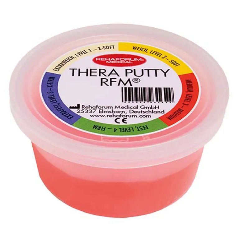 Die Knete Putty RFM® kann für Finger- und Handübungen verwendet werden. Durch verschiedene Übungen, stärkt Sie die Muskulatur und fördert die Feinmotorik, darüber hinaus ist unser Produkt anwendbar bei Konzentrationsstörungen und zur Mobilisierung und Kräftigung von Fingern und Händen. Putty RFM® ist in fünf verschiedenen Farben/Härtegraden erhältlich und kann in drei unterschiedlichen Größen/Mengeneinheiten ausgewählt werden. Eine umfangreiche Beschreibung und Übungsanleitung stellen wir den Anwendern zur Verfügung. Putty RFM® färbt nicht ab, ist geruchsneutral und lässt sich rückstandslos entfernen.