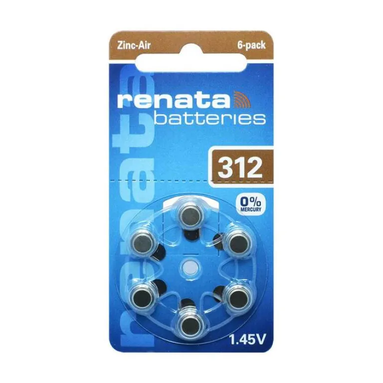Renata Hörgeräte Batterien ZA 312 DP6 0% HG, 6 St- Batterien