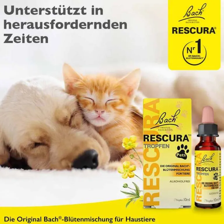 Rescura Bachblüten Original Pets Tropfen alkoholfrei vet. (für Tiere), 10 ml- Beruhigungsmittel Katze|Beruhigungsmittel Hund