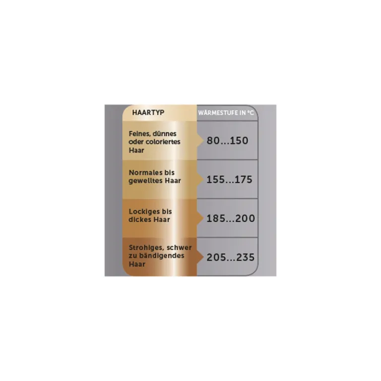 Variable Temperatureinstellungen bis zu 235 Grad C bieten ultimative Flexibilität beim Stylen jedes Haartyps.