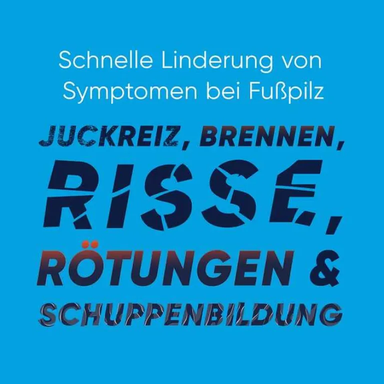 - Lindert 5 Symptome von Fußpilz: Bei einer täglichen Anwendung über einen Zeitraum weniger Tage werden fünf Fußpilzsymptome schnell und wirksam gelindert. Dazu gehören der oft auftretende Juckreiz und das Brennen an den Füßen sowie die Minimierung von schmerzhaften Rissen, Schuppung und Rötung der Haut.