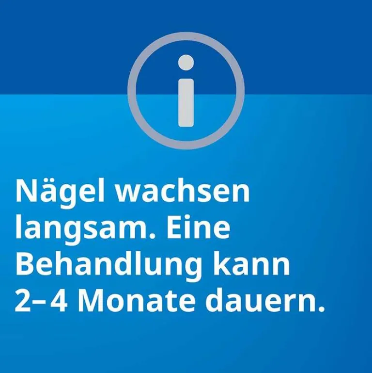 Nägel wachsen langsam, sodass es 2 oder 3 Monate dauern kann, bis Sie eine Verbesserung erkennen. Es ist wichtig, die Anwendung des Nagellacks weiterzuführen, bis die Infektion beseitigt ist und gesunde Nägel nachgewachsen sind.