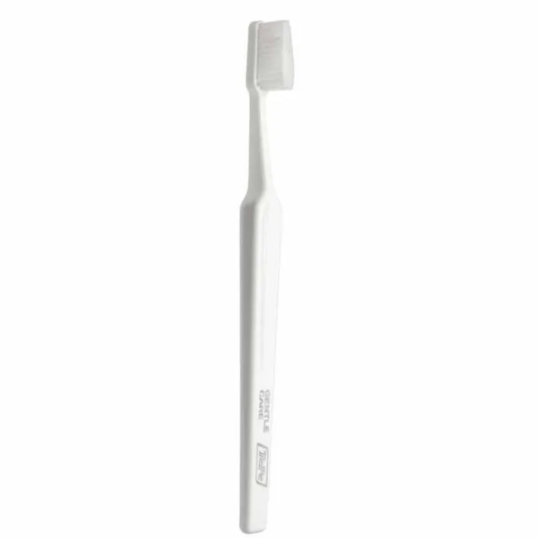 Die Gentle Care ist eine Spezialbürste, geeignet für Patienten mit empfindlicher Mundschleimhaut, freiliegenden Zahnhälsen oder auch Gingivitis. Gentle Care wird nach chirurgischen Eingriffen als zweiter Schritt empfohlen, um einen weicheren Übergang zwischen Special Care und der normalen Zahnbürste zu gewährleisten.