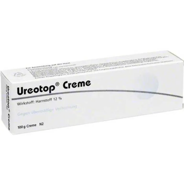 Ureotop Creme.Wirkstoff: Harnstoff. Anwendungsgebiete: Übermäßige Verhornung, leichtere Formen der Ichthyosis (Fischschuppenkrankheit), Rückfallprophylaxe und Dauerbehandlung bei Ichthyosis. Follikuläre Verhornungsstörungen, trockene, spröde, gerötete Haut. Warnhinweise: Enthält Propylenglykol, Erdnussöl, Butylhydroxytoluol und Cetylstearylalkohol. Stand: 01/2019 Zu Risiken und Nebenwirkungen lesen Sie die Packungsbeilage und fragen Sie Ihre Ärztin, Ihren Arzt oder in Ihrer Apotheke.