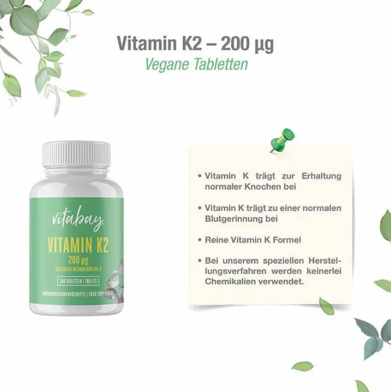 * Vitamin K trägt zu einer normalen Blutgerinnung bei, Vitamin K trägt zur Erhaltung normaler Knochen bei.