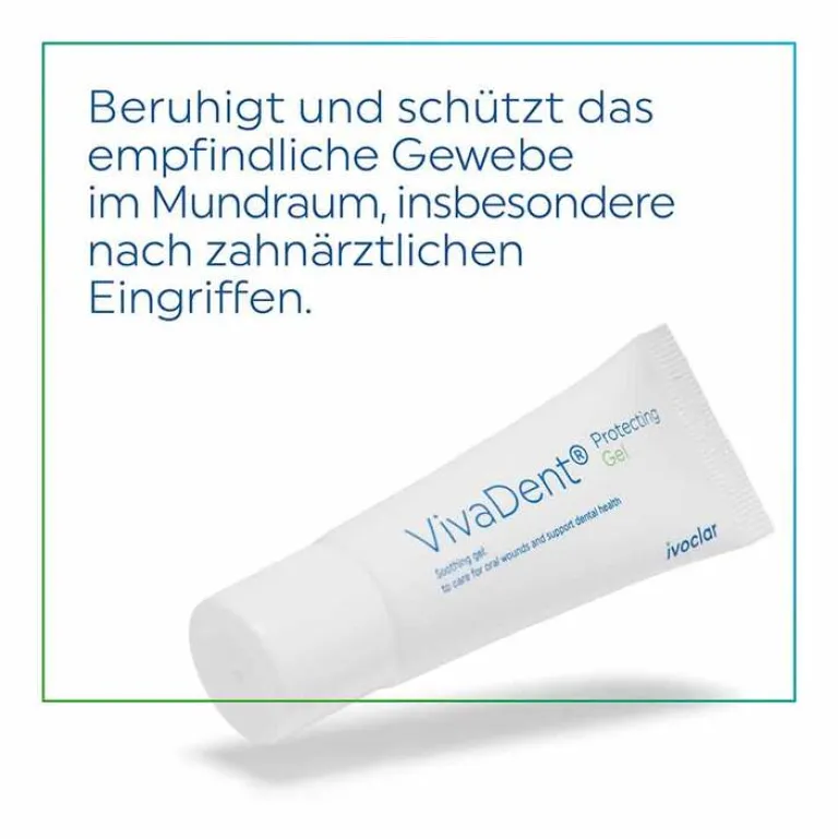 Das VivaDent Protecting Gel ist ein Mundpflege-Gel und bietet nicht nur Schutz vor Karies und Entzündungen, sondern sorgt auch für eine sanfte Pflege von gereiztem Zahnfleisch und empfindlichem Gewebe rund um Kronen, Brücken und Implantate.
