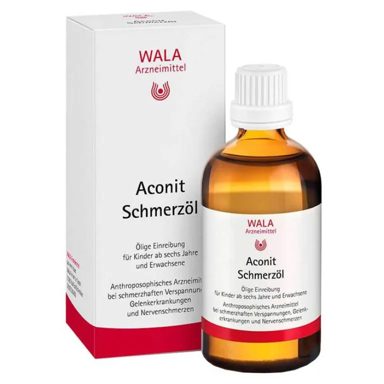 Aconit Schmerzöl. Ölige Einreibung. Anwendungsgebiete gemäß der anthroposophischen Menschen- und Naturerkenntnis. Dazu gehören: Anregung des Wärmeorganismus und Integration von Stoffwechselprozessen bei schmerzhaften entzündlichen Erkrankungen, die vom Nerven-Sinnes-System ausgehen, z.B. Nervenschmerzen (Neuralgien), Nervenentzündungen (Neuritiden), Gürtelrose (Herpes zoster), rheumatische Gelenkerkrankungen. Warnhinweis: Enthält Erdnussöl. WALA Heilmittel GmbH, 73085 Bad Boll/Eckwälden. Zu Risiken und Nebenwirkungen lesen Sie die Packungsbeilage und fragen Sie Ihre Ärztin, Ihren Arzt oder in Ihrer Apotheke. </small
