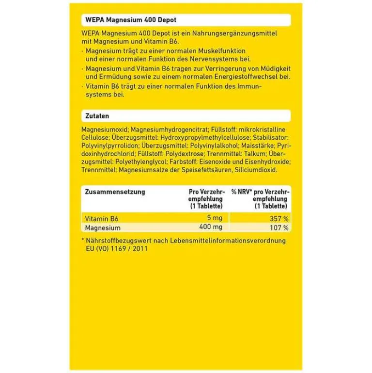 Wepa Magnesium 400 Depot + B6 Tabletten, 60 St- Vitamin B6 (Pyridoxin)|Magnesium