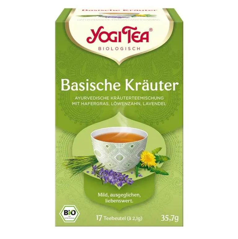Yogi Tea Basische Kräuter – Ayurvedischer Bio Kräuter-Tee mit Hafergras, Löwenzahn, Lavendel