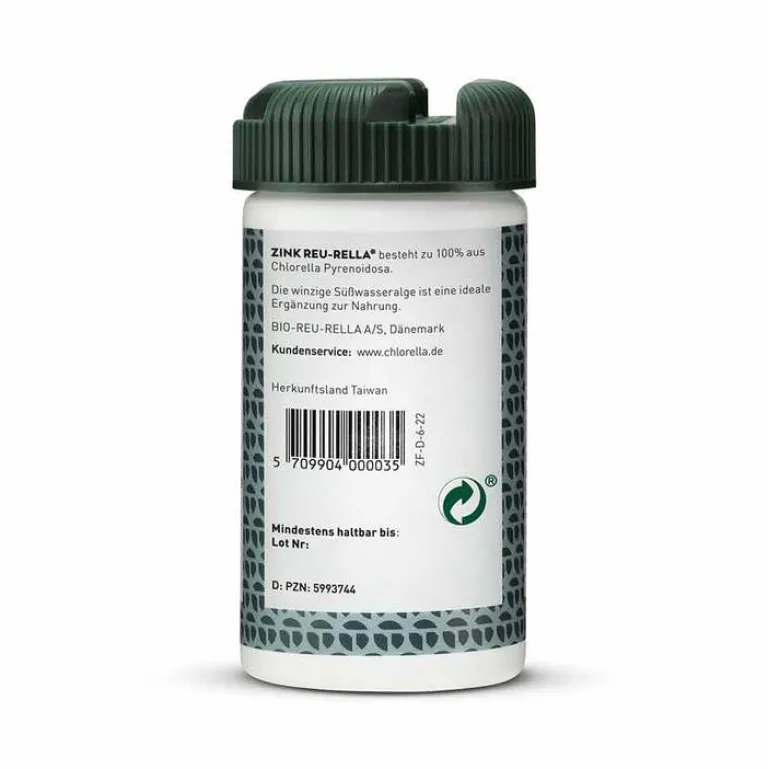 Zink Reu-Rella ist ein Nahrungsergänzungsmittel aus 100% reiner Chlorella (Chlorella pyrenoidosa), angereichert mit natürlichem Zink.